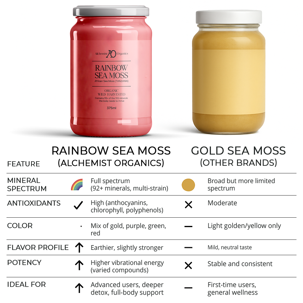 - Capsules: 100% Organic Rainbow Sea Moss (From Tanzania)
